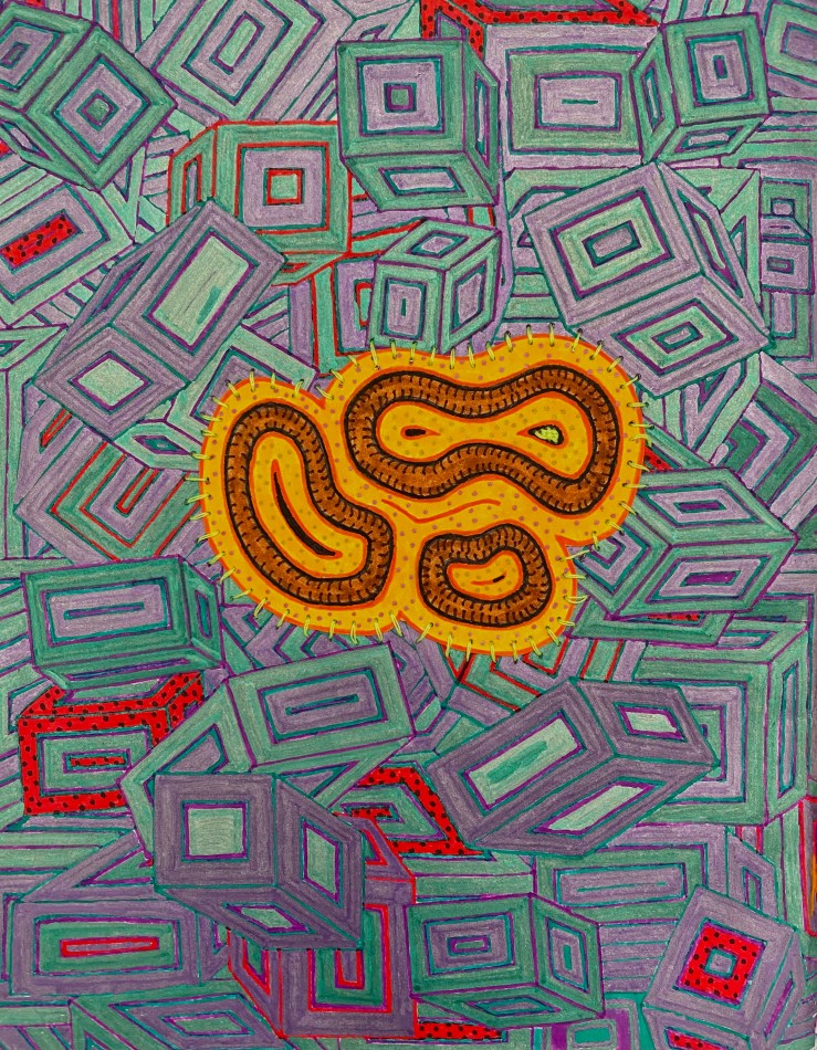 Altered State No. 5: Isolated (Marker and string on paper, 18cm x 22.5cm)