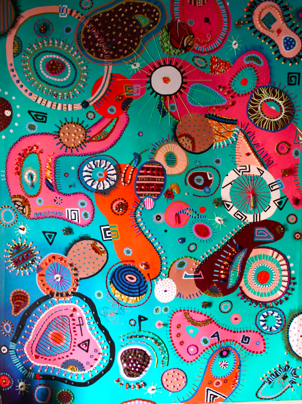 “Optic Carnival” – Part 1 (Detail) In Progress October 20, 2017October 18, 2017 ayamariehewlettLeave a comment Mixed Media on canvas