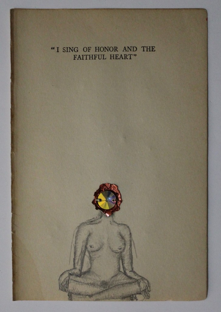 “Honor and Heart” Graphite, acrylic and bead on vintage Paper (1902) 7.25″ x 5″